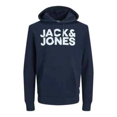 Jack & Jones Jjecorp LOGO NOOS Hoodie navy Sale at Zalando UK | Outer fabric material: 3% viscose, 14% polyester, 83% cotton | Sale order at Zalando UK! Size: Large. Color: Navy . Pattern: print.