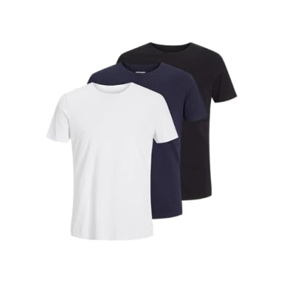 Jack & Jones JJE 3 PACK Basic Tshirt, Men's, Size: Medium, Black navy white