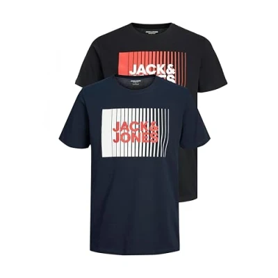 JACK & JONES Jjecorp Logo Tee Play SS O Neck Noos Men's T Shirt, 2 Pack (1 x Black, 1 Navy Blazer), XXL