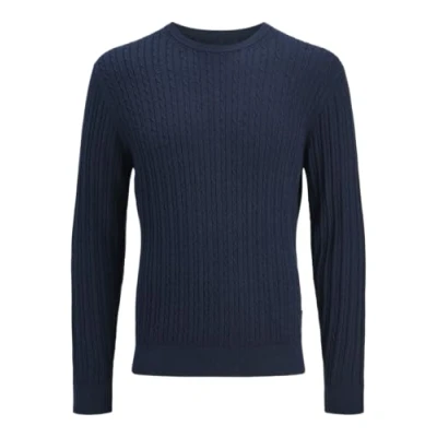 Jack & Jones Jjeemil Cable CREW NECK Jumper, Men's, Size: Large, Navy blazer