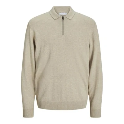 JACK & JONES Jjeemil Knit Polo Half Zip Jumper, Oatmeal