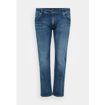 genuine leather patch at waistband Sale | Outer fabric material: 80% cotton, 2% elastane, 18% polyester | Sale order at Zalando UK! Size: 42x34. Color: Blue denim.