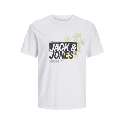 JACK & JONES Jjjaxon Men's Short Sleeved T Shirt SS Crew Neck LN, White, S