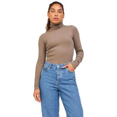 JACK & JONES JJXX Women T shirts Roll Neck, Long Sleeves, Stretch Fit for Casual and All Day Wear [Colour Morel; Size L]