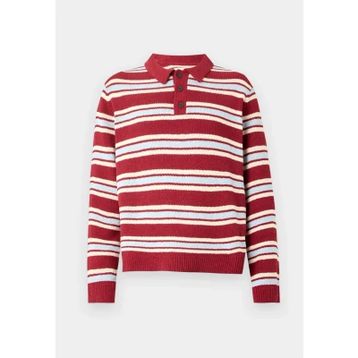 Jack & Jones Jorcambridge Jumper tibetan red/skyway Sale at Zalando UK | Outer fabric material: 100% polyester | Sale order at Zalando UK! Size: Medium. Color: Tibetan red/skyway. Pattern: striped.