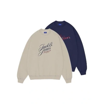 Jack & Jones Jorinwood CREW NECK 2 PACK Sweatshirt, Men's, Size: XS, Antique white pack/ocean cavern
