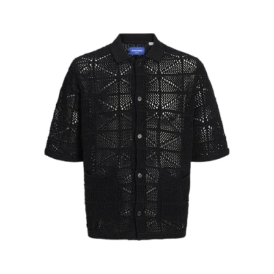 JACK & JONES Men's Jorretiro Crochet Knit Polo Se25, black, L