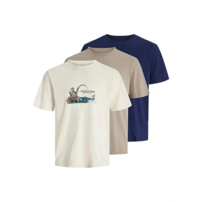 Jack & Jones Jorskull Nature TEE CREW NECK 3 PACK Print Tshirt, Men's, Size: XS, Antique white/mocha meringue/ ocean cavern
