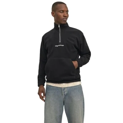 Jack & Jones Jorvesterbro Quarter ZIP Fleece jumper, Men's, Size: Medium, Black