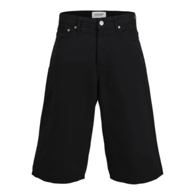 Jack & Jones Jpstowen Contrast Panel LONG Denim shorts, Men's, Size: Medium, Black