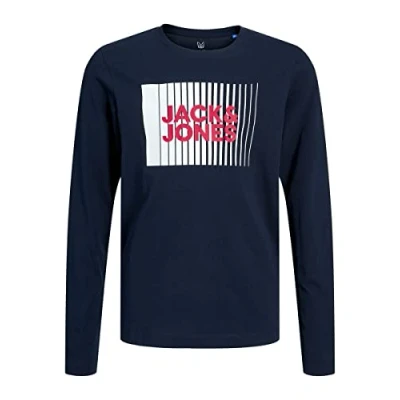 Jack & Jones Junior Boy's Jjecorp Logo Tee Play LS O Neck Noos Jnr T Shirt, Blazer Navy, 12 Years
