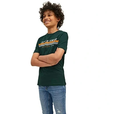 JACK & JONES Kids Boys T Shirts Crew Neck Regular fit Junior Tee Top Pine Grove 128cm (8 Years)