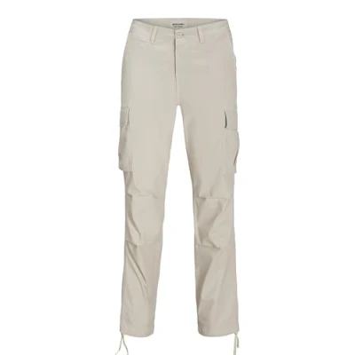 JACK & JONES Male Cargo Trousers Tapered Fit Trousers, Moonbeam, 31 W/34 L