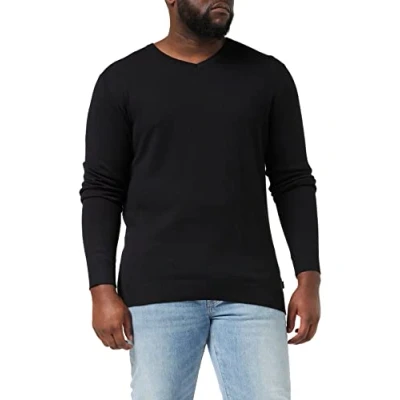 JACK & JONES Male Knitted V Neck Jumper, Black (Black), M