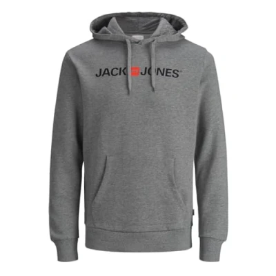 JACK & JONES Male logo hoodie, Grey (Medium Melange/Reg Fit), S