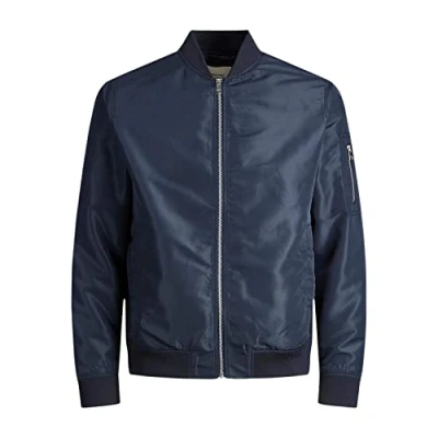 JACK & JONES Men's 100% Polyester Long Sleeve Bomber Jacket (S, Navy Blazer)