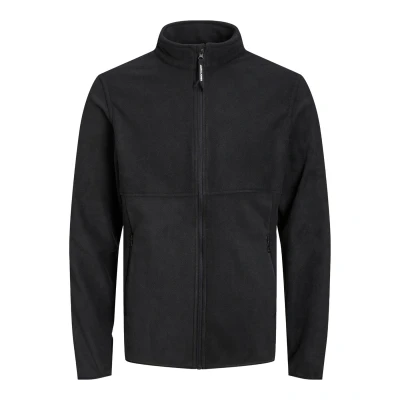 JACK & JONES Men's Fleece Jacket Long Sleeve High Standup Collar Coat, Black Colour, UK Size S