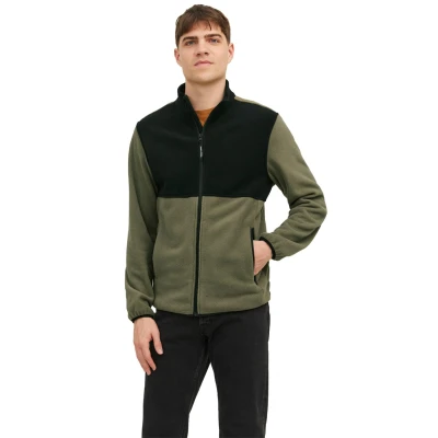 JACK & JONES Men's Fleece Jacket Long Sleeve High Standup Collar Coat, Olive Colour, UK Size XL