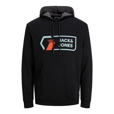 JACK & JONES Men's Hoodie Pullover Sweat Long Sleeve Sweatshirt, Black, S
