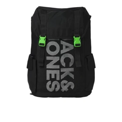 JACK & JONES Men's Jacashford Mesh Backpack, Black/Detail: Iceland Green, One Size