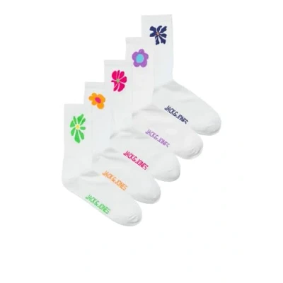 JACK & JONES Men's Jacaugust Tennis Socks 5 Pack, White/Pack: White, One Size