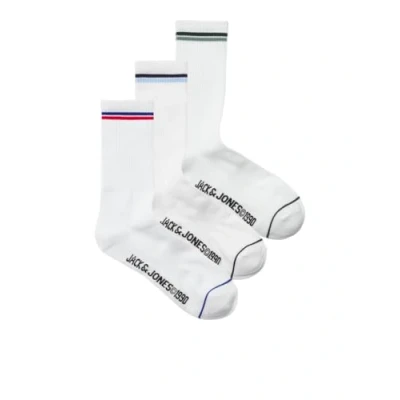 JACK & JONES Men's Jacjason Tennis Socks 3 Pack Sn, White/Pack: White White, One Size