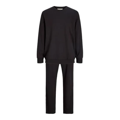 JACK & JONES Men's Jacterry Ls Crew Neck and Pants Set W, Black, M