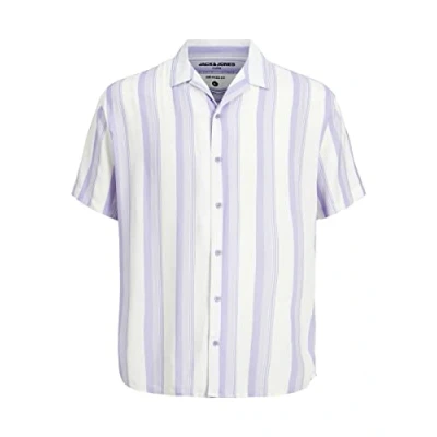 JACK & JONES Men's Jcochain Reggie Resort Shirt Ss, Lavender/Stripes: Stripes, L