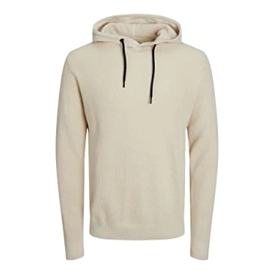 JACK & JONES Men's Jcoclassic Waffle Knit Hood Sn Sweatshirt, Moonbeam, M