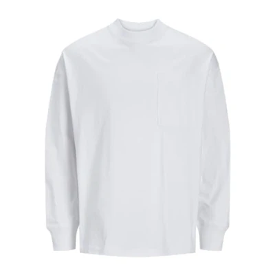 JACK & JONES Men's Jcoclean Pocket Tee Ls Crew Neck Longsleeve T Shirt, White, S
