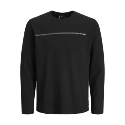 JACK & JONES Men's Jcofusion Full Branding Tee LS Crew Neck, Black, S