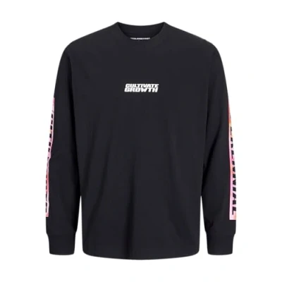 JACK & JONES Men's Jcointerlude Floral Tee Ls Crew Neck, Black, M