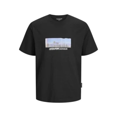 JACK & JONES Men's Jcosago Photo Slub Tee SS Crew Neck, Black, XL