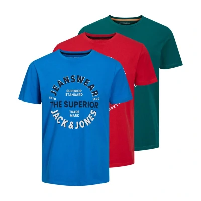 JACK & JONES Men's Jjandy Tee Ss Crew Neck 3pk Mp T Shirt, Storm/Pack:Storm+French+red Big, S