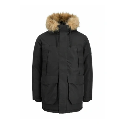 JACK & JONES Men's Jjcamp Faux Fur Parka Bf, Black, x_l