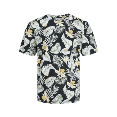 JACK & JONES Men's Jjchill AOP Tee SS Crew Neck T Shirt, Blazer Navy, M