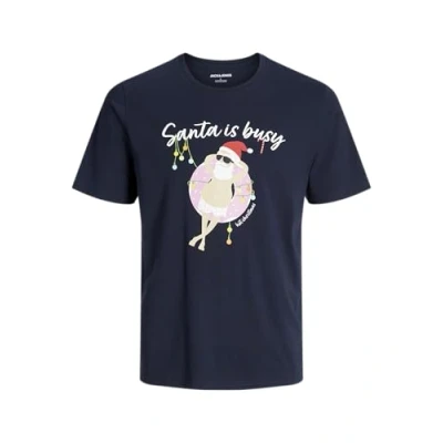 JACK & JONES Men's Jjchristmas Tee Ss Crew Neck Jnr, Sky Captain, 16 Years