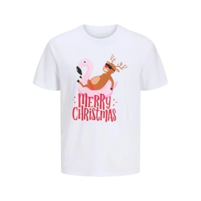 JACK & JONES Men's Jjchristmas Tee Ss Crew Neck Xmas, White, XL