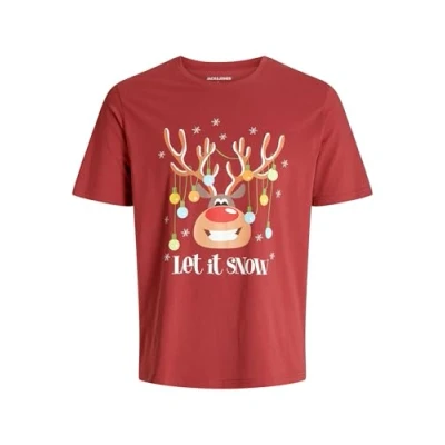JACK & JONES Men's Jjchristmas Tee Ss Crew Neck Xmas, Ziegelrot, XL