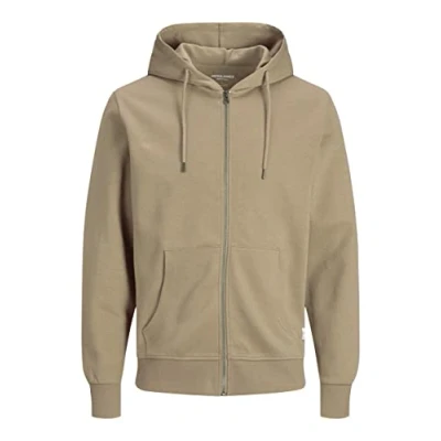 JACK & JONES Men's JJEBASIC Sweat Zip Hood, Crockery/REG, XXL