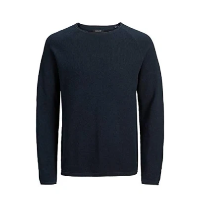 JACK & JONES Men's Jjehill Knit Crew Neck Noos Sweater, Navy Blazer/Detail: Gradient, L