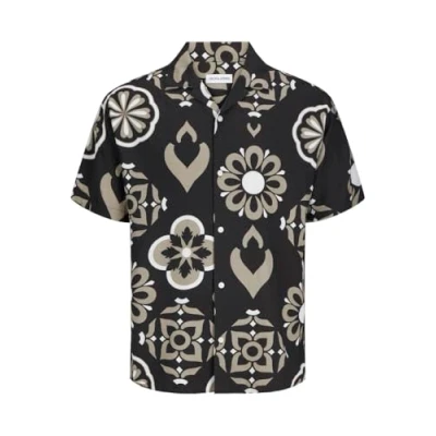 JACK & JONES Men's Jjeurban Edge Resort Shirt Ss Sn Short Sleeved, Jet Black, L
