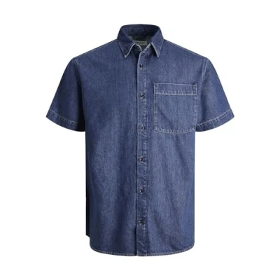 JACK & JONES Men's Jjicreek Jjshirt S/S Wi 075 Sn Hooded Sweatshirt, Blue Denim, L
