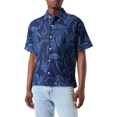 JACK & JONES Men's Jjipalma Jjresort Shirt S/S Wi 872 Short Sleeved, Blue Denim, S