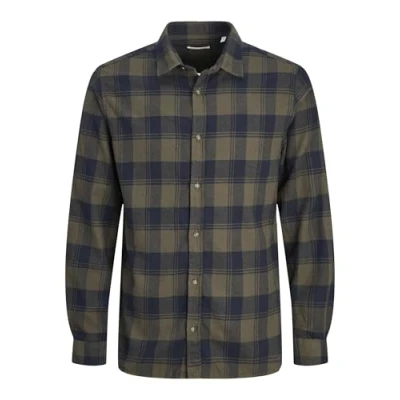 JACK & JONES Men's Jjjoshua Fall Buffalo Shirt Ls Casual, Forest Night, XS