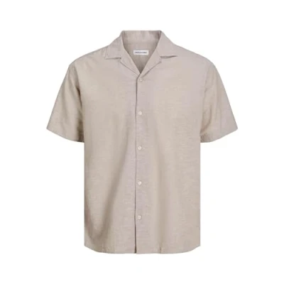 JACK & JONES Men's Jjlinen Resort Shirt Ss, Crockery, M