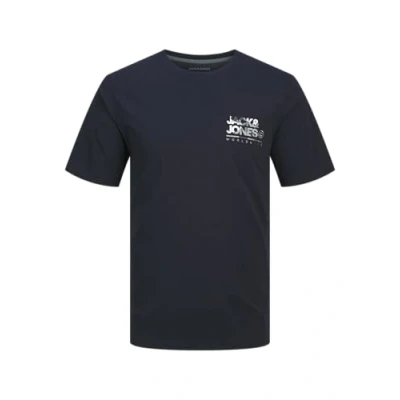 JACK & JONES Men's Jjluke Tee SS Crew Neck T Shirt, Dark Blue White Grey, S