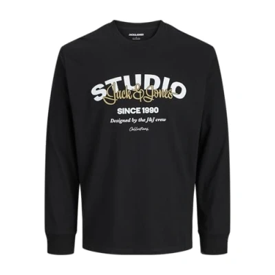JACK & JONES Men's Jjyuki Tee Ls Crew Neck Bf, Black, M