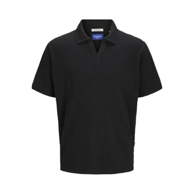 JACK & JONES Men's Joracapulco Texture Polo Ss, Black, XL