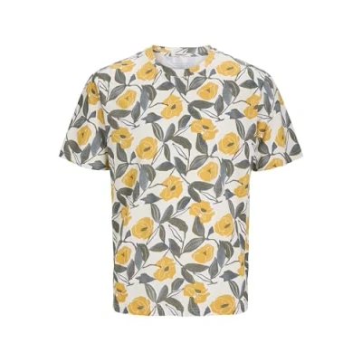 JACK & JONES Men's Joralmeria AOP Tee SS Crew Neck, Buttercream, XS